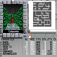 This game is nice. It's like the C64-version, but with improved graphics. So there is a ground and ceiling in the dungeons and the monsters are better animated. You need maps for the dungeons. If there is space in your party you can take a monster as follower. You should have some fighters in front of your party and in the back a conjurer and a magician. Later your wizards can change the class. In town is a guild where you can improve your characters.