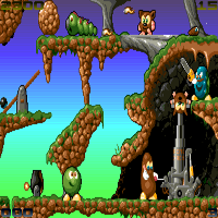 This game is made by Thalamus in the year 1992. This is a jump-n-run-game. With the stick you move, with stick up you jump and with fire you shoot. Pressing longer fire-button you shoot a fire-flame. You have a protection, when you are shot you lose it. And when you are shot then you lose a life. The screen scrolls horizontal. When you collide with a monster or a monster-shot you lose your protection (or a life). Some monsters you can't shoot, you must jump over it.