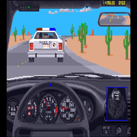 This game is made by Accolade in the year 1989. This is a racer-game. With the stick you control, with stick up you give speed. The gear turns automatically. You race against another driver. When you drive against a police-car you are game over. After each round you must stop at the gas station. In the begin you must select a car. And you can select the difficulty.