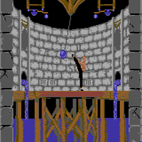 This game is by Thalion in the year 1989. This is a fighting-game. With the stick you move, with fire you kick. First you can't fight, you must practice the chambers. The first exercise is to jump on poles where is a sign. When you jump wrong you fall into the water. The second chamber is a closed one, where water floats in. You must kick a sphere wich activates the hole, where the water can flee.