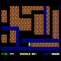 This game is by Kingsoft in the year 1988. This is a strategic action-game. With the stick you move. It is like the game Boulder Dash. You are in a big chamber filled with earth, rocks, diamonds and monsters. The earth is no problem but the rocks can fall on you and then you lose a life. The monsters you can kill if you push a rock and it falls on the monster. You must collect in every level a special amount of diamonds and find the exit.