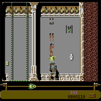 This game is by Logotron in the year 1989. This is an action-game, the screen scrolls horizontal. With the stick you move, with stick up you transform to a hawk, with stick down and fire you activate an item, with fire you shoot. You are Horus and must revenge you father Osiris. The evil is the god Seth. He has killed Osiris and spread the pieces of Osiris. You must find the pieces and find a way through the dungeon. The first dungeon is gray, the second is blue.