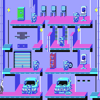 This game is by Epyx in the year 1988. This is an action-game, the screen scrolls in all directions. With the stick you move, with fire you jump a salto. In each room are robots you don't have to touch. When you touch them you lose a life. You have unlimited lives but when you lose one your time will be reduced. There is a time-limit. In each rooms are things you must discover, that takes a moment.