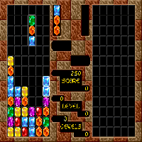 This game is made by Sega in the year 1990. This is a puzzle-game. You move with the stick, with the button you switch the blocks of a piece. It is like Tetris but there are only the long pieces. The long pieces are divided in boxes which different symbols. You must match the same symbols in a row or a column. Another names for this game are "Shapes and columns" and "Columns: Taisen Mode Tsuki". It is similar to "Coloris".