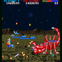 This game has disappointed me. For an arcade-machine it is not enough, for example "R-Type" is much better. At the end of each level awaits you an endboss. The graphics are only average. On the end of the second level is a Yeti. The backgrounds change after each level. In this game is nothing new. First you are an astronaut, later you become a spaceship.