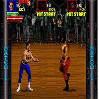 This game is made by Atari in the year 1990. This is a fighting-game. You move with the stick, with one button you hit, with the other button you kick. In the begin you can select a fighter you want to play. The graphics of the sprites is digitalized. The screen scrolls horizontal. When you press all three buttons to the same time you make a 'super move'. There are 15 different matches.