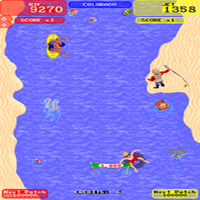 This game is made by Atari in the year 1988. You control a man in a swim tire through a river. You move with the stick, with the buttons you paddle. There are some chests in the river which bring you points. At the border are enemies which shoot on you, you can shoot them with beercans. On the route are junctions and waterfalls. In this game is a 2-Player-Mode. The background is scrolling so fast like you paddle.