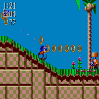 This game is made by Sega in the year 1993. It is an action-game. With the stick you move, with A or B you jump. When you jump you turn to a spinball. When you jump on the head of an enemy it dies. You can collect many rings. When you touch an enemy you lose first your rings. When you touch it and you haven't a ring you die.