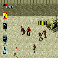 This game is made by Sega in the year 1989. This is a shooter with Rambo. With the stick you move, with A you select a weapon, with B you use the selected weapon and with C you can shoot your machine gun. You start in a military base and must bomb the open gate. You have time-bombs, a knife and a bow. There are six levels. In the third level the area is big, you must paint a map. At the end of each level awaits you an endboss. If you are game over, you can play with a continue.