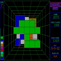 This game is by California Dreams in the year 1989. This is a tetris-game. You control it with mouse and keyboard, with q,w,e,r. You see all from above in 3D. In level one it is very slow, later it gets faster. When you have made a special number of rows you get to the next level. When you click the left mousebutton the piece falls to the ground. Like in original is game over when your fallen pieces reach the top.