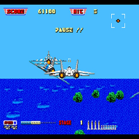 This is a good game. The graphics are very fast,it makes much fun to fly. But it is sad, that there is only one continue. The best way to dodge the enemies missiles is to fly in circles. When you start with the continue you haven't one missile. The music could be better, but there are some tracks. There are no extras. 1987 made Sega the original.