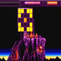 This game is made by Ubisoft in the year 1990. This is a puzzle-game. With the stick you move a field, with fire you select it. In the begin is shown a quadrat of 25 pieces. There are pieces in different colors and you must memorize them. Then you must fill the quadrat with the pieces which come from a funnel. When you play alone you have a time-limit. There are special pieces like a rubber which deletes a false set piece. Or a memory-piece which shows you short the pattern you must set.