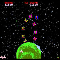 This game is made by Kingsoft in the year 1989. This is a sci-fi-shooter with aliens and spaceships. It is like the classic game "Galaga". With the stick you move left or right, with fire you shoot. The difficulty raises from level to level. In the bonus-rounds you dont lose a life. It is possible here to shoot diagonal. The alien can kidnap your weapon.
