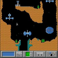 This game is made by Kingsoft in the year 1989. Here you are a spaceship which is flying like in "thrust" or "oids". There are big enemy-ships which are shooting to you. With some shoots you can destroy them. The goal of the game is to collect boxes and bring them back to your base. There are 50 levels in this game. Also there is a race-modus where you must fly quickly a slalom. And there is a dogfight-modus where you must kill your opponent. The screen is scrolling vertical.