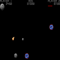 This game is made by Atari in the year 1987. This is an action-game. You control a spaceship with the stick, with fire you shoot and with stick up you fly forward. When you reach the bottom you are on the top and otherwise. You can hold the button to get autofire. When you shoot a big asteroid it divides in smaller ones. When you collide with an asteroid you lose a life. There is a 2-Player-Mode.