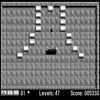 The most special thing here is, that you can move your pad everywhere. So you can make more maneuver. Although it is for monochrome the graphics look good. First this game was Public Domain. Because you can move your pad up you can slow down the ball. In the begin is classic music, but it is bad digitalized. There are tiles which cant be hit, you must get the ball somehow outside around. Also you can hit the ball with the side of your pad.