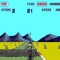 This game is made by Activision in the year 1987. Here you control a cycledriver with the joystick. It is shown in 3D. There are little hills you can jump over. Every course has a time-limit. First this game was a coin-op. There are other cycles you must avoid. There are five courses which look different.