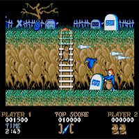 This is a nice game. But this version is harder than others, there are tons of zombies coming. It is good that there are checkpoints. This game is a perfect opener for a horror-game-session. When you are hit, you lose first your armor, not a life. In the end of the level you get your armor back. Later in the dungeon-level is the dragon hard to kill. First the screen scrolls horizontal, later vertical, too.