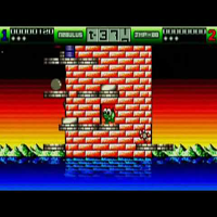 This game is made by Hewson in the year 1988. This is an action-game. You move with the stick, with fire you shoot. To jump you must turn the stick diagonal left or right. There are eight towers. After a tower comes a bonus-game where you must shoot fishes and collect them. There are enemies flying over the screen. When you touch them you fall deeper.