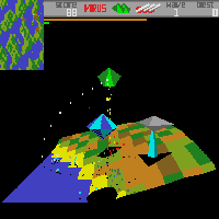 This game makes much fun. The flying-feeling is very good. The graphics are very fast. The more you play the more agressive will be the enemies. There are also rockets flying to you, they come from behind. It is not easy to control your ship. The enemies throw the virus on land, it becomes red. On Archimedes the game is called "Zarch".