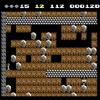 This game is by First Star in the year 1984. Each level here is full of earth, stones, walls and diamonds. To get to the next level you must get a special amount of diamonds. But there are enemies which move and you dont have to touch them. To kill them you must push a stone on them. In some level then they change oneself to diamonds. Each level has a time-limit. When an enemy die near a wall, the wall vanishes.
