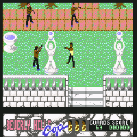This game is by Tynesoft in the year 1990. This is the game to the movie with Eddie Murphy. In the begin is the music by Harold Faltermeyer. There are five different games. The first game is a racer, where you must find a red cadillac. You have arrows on the screen which shows you where he is. In the second level you must avoid that the gangsters steal a weapon-depot. Level 3 is again a racer-game.