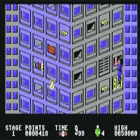 This game is by Electric Dreams in the year 1987. This is an action-game. With the stick you move, with fire you shoot. The screen scrolls from up to down. You must climb up a scyscraper which burns and must rescue people and dogs. This game was first a coin-op. You should shoot always up because there is much trouble on the screen. And try not to be on the border.