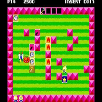 This game has very sweet sprites and music. It is not a simple action-game, here you need some tactics. The fire-extra isnt so effective, the crown-blocks are better. Sometimes you come in a shop where you can buy an extra. This game has a 2-Player-Mode. The blocks you can move or destroy. It is good to hit with a block more than one enemy. After a while the music goes faster, there is a time limit.