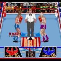 This game is made by Konami in the year 1988. This is a boxing-game. You move with the stick, with the two buttons you can make several hits and with the third button you make your defence. In the begin you can select your strength, speed and condition. The sprites look nice, they are really big. There is a 2-Player-Mode. Each enemy has his own tactics. The first enem is easy, you must get him in the corner and hit often.