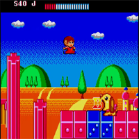 This game is made by Sega in the year 1988. You play Alex Kidd and move from left to right, the screen is horizontal scrolling. With the stick you move and with B is jumping. There are 12 levels where you must find the lost stars. Collect the blue pills and you get more energy. With the right pills you can shoot or make a super-jump. If you make six levels, the game starts again but more difficult. The first enemies are big playcards.