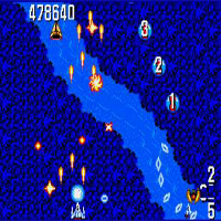 This game is made by Sega in the year 1988. This game is a sci-fi-shooter. With the stick you move, with the A-Button you shoot, with B you can shoot in all directions. There are eight extras you can collect. The screen is scrolling vertical, you move from down to up. There are unlimited continues available. You can combine the extras. Many sprites are on the screen.