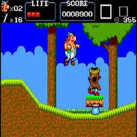 This game is made by Sega in the year 1991. It is a jump-n-run-game. With the stick you move, with B you jump and with A you hit with the fist. The screen scrolls first horizontal,later in all directions. First you play Asterix, then Obelix. Some stones are obstacles and you must hit them away. There are platforms which rotates, when you are not fast enough you fall down. The first level is in the nature, the second in a dungeon.