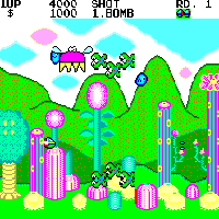 This game is made by Sega in the year 1986. This is a spaceship-shooter with very sweet graphics. You move your ship with the stick, with A is shooting, with B you throw Bombs. The screen scrolls horizontal in both directions. To get a better weapon you must collect the coins which leave the killed enemies. Your name in this game is "Opa-Opa". At the end of each level is a big boss you must defeat. There are eight levels in the game.