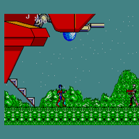 This game is made by Sega in the year 1987. This is an action-game. With the stick you move, with the A-Button you jump, with B you shoot. You must get secret information that are saved on five disks. The disks are in a base on planet X. You must find two agents which disappeared in this base. After this you must destroy the base. There are 128 rooms.