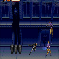 This game is made by Sega in the year 1995. This is a horizontal fighting-game. With the stick you move, with A is hit, with B is jump. You throw little stars. There is a continue-mode. The first level starts in Gotham City. The evil break out from prison, you must get him. There are extras like smartbombs. There is a little intro-sequence.