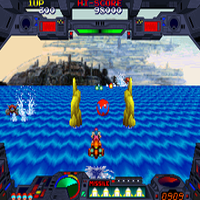 This game is made by Namco in the year 1991. This is a 3D-Shootem'up. With the stick you move and give speed (or fly up and down), with A you shoot normal and with B you shoot missiles. It is similar to the game "Afterburner" (but science-fiction-themed). The missiles are best weapons, but they are limited. Your energy-shield has three parts, when all are shot you lose a life. Before the endboss a intro-sequence is coming where you are shown where the weak points of this boss are. With the first glider you can control the speed, with the second the highness. You can upgrade your normal shoot to triple- or quatro-shooting.