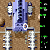 This is a good game. It makes fun to catch an extra, then your ship transforms to another ship. It is similar to "Xevious". There are enemies in the air and on ground. You can get extra-lifes and speed-ups. There are ten levels with an endboss. In the options-menue you can choose the difficulty. This game was first a coin-op.