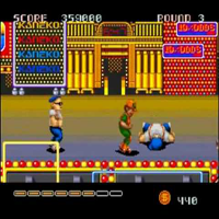 This game is made by Kaneko in the year 1990. This is an action-game. With the stick you move, with A is hit, with B is kick. In this game you drive with roller-blades. There are enemies you must kick or hit away. Each level has an endboss. You must rescue your girlfriend, she is captured by a clan. There are also cute girls which are throwing dynamite. There are obstacles like oil stains you must avoid.