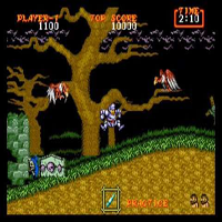 This game is made by Sega in the year 1989. This is a horizontal jump'n'run-game. With the stick you move, with A is jump, with B is shoot. This game is the follower of "Ghost'n'Goblins". It plays in a horror-scenario. You can get a golden special-armor. There are five long levels. If you collide with a monster you lose your armor and must go on with underwear. The weapon can be a lance, an axe, a dagger or a fireball.