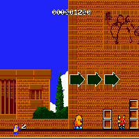 This is a very sweet game. The sprites look very cute. Sometimes there is water but you hava a swim suit. When you kill an animal they leave sometimes a bomb or an extra-life. In each level is an endboss you must defeat. The music is very happy. At some points you need some lifes to find out the right way. Some animals shoot, you must dodge them.