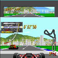 This game is made by Sega in the year 1990. This is a racer-game. With the stick you move, with A you break, with B you give speed. You can drive a normal Grand Prix or a tournament. The view is from 3D. Firste there is a qualification race. After this you drive with other drivers. This game was first a coin-op. You must hold during the drive a "position limit".