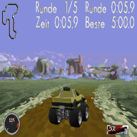 This game is by Bi-Fi Roll in the year 1995. This is a racer-game, the game is in 3D. You control it with cursor-keys. First you can select a car. Then you chose a cup to race. There re three cups with each three courses. In the background of each race is music. You can collect rockets, with space-bar you activate them.