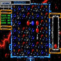 This game is by Psygnosis in the year 1990. This is a puzzle-game. You control it with keyboard, cursor-keys are for moving, return-key is for placing. In the begin you can select the music and enter a password. You must set atoms which have a different amount of connections. There are five different atoms. You can get a joker-atom which fits to every atom. There are two modes: In the first mode you must only build a molecule, in the second you get an order to build.