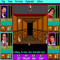 This game is made by Accolade in the year 1989. This is a rpg in horror-scenario. You can choose four characters, which you see at the border of the screen. In the middle you see a 3D-window. Moving is with the cursor-keys. The game plays in a ghost house which has 10 floors. Some monsters leave a usefull item. Here is no magic, here counts the chemic attribute. So you can make poison acids or protectionshields.