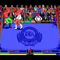 This game is by Electronic Arts in the year 1990. This is a boxing-game. You control it with keyboard, with the Num-Pad. There is a 2-Player-Mode. You can make several hit-techniques, but the best is the low blow. Better than keyboard-control is the joystick which is available in this game. The first enemy is easy to defeat. You can also defend the enemies hit.