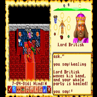 This is a nice game. It is the first Ultima-game with good graphics. It makes much fun to explore that world. The people of Britannia act like in reality, they sleep and go to work. With all people there you can talk, they can give you important hints. The fights are round-based, strategic. Lord British can heal you and your party each time for free. The first dungeon you should do is under the castle.