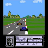 This game is made by Data East in the year 1988. This is a racer-game. With the stick you drive, with the A-button you give speed, with B you brake. This game has a 3D-view. In the begin you can select between time trial and world championship. After some rounds you must halt in a box-stop to refuel your car. You have a turboloader which gives you extra-speed. Al Unser was a famous racer in USA and he gives you tipps in the game.