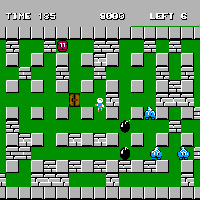 This is a nice game for a while. You can destroy some blocks, but some blocks you cant. There are two extras in this game, the bomb and the fire. With the bomb you can lay an additional bomb and with fire you raise the range of your bombs. The fire of the bombs go in all four directions and turn on other bombs. When you have killed all monsters you must find the hidden exit. After every fifth level comes a bonus-round. In these rounds you are invincible but there is a time-limit.