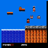 This game is made by Vic Tokai in the year 1989. This is a jump'n'run-game. With the stick you move, with the A-button you jump and with B you shoot. Your player is named Billy Big Blank Blitz. You start with a handgun, later you can buy in a shop a boomerang-gun. Later you can get powers like healing or teleporting. The game is divided into a number of smaller stages, each representing a point on the over-world map. There are over 40 routes the player can take in the game, and the player must explore the world to progress.