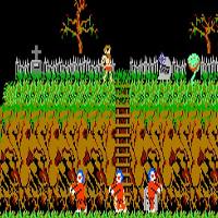 This game is made by Capcom in the year 1986. The scenario of this game isnt fantasy or sci-fi, it is horror. There are skeletons and ghosts which you must kill. The first level starts with a cemetery, later comes a forest. Then it goes through a town and then comes a green cave with a dragon on its end. There are some weapons, a lance or a torch. This game has eight levels. With the stick you move, with B is shoot and with A is jumping.